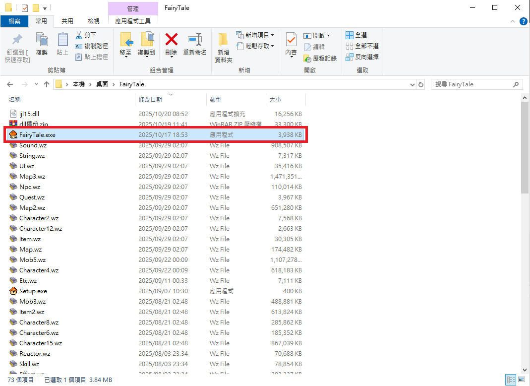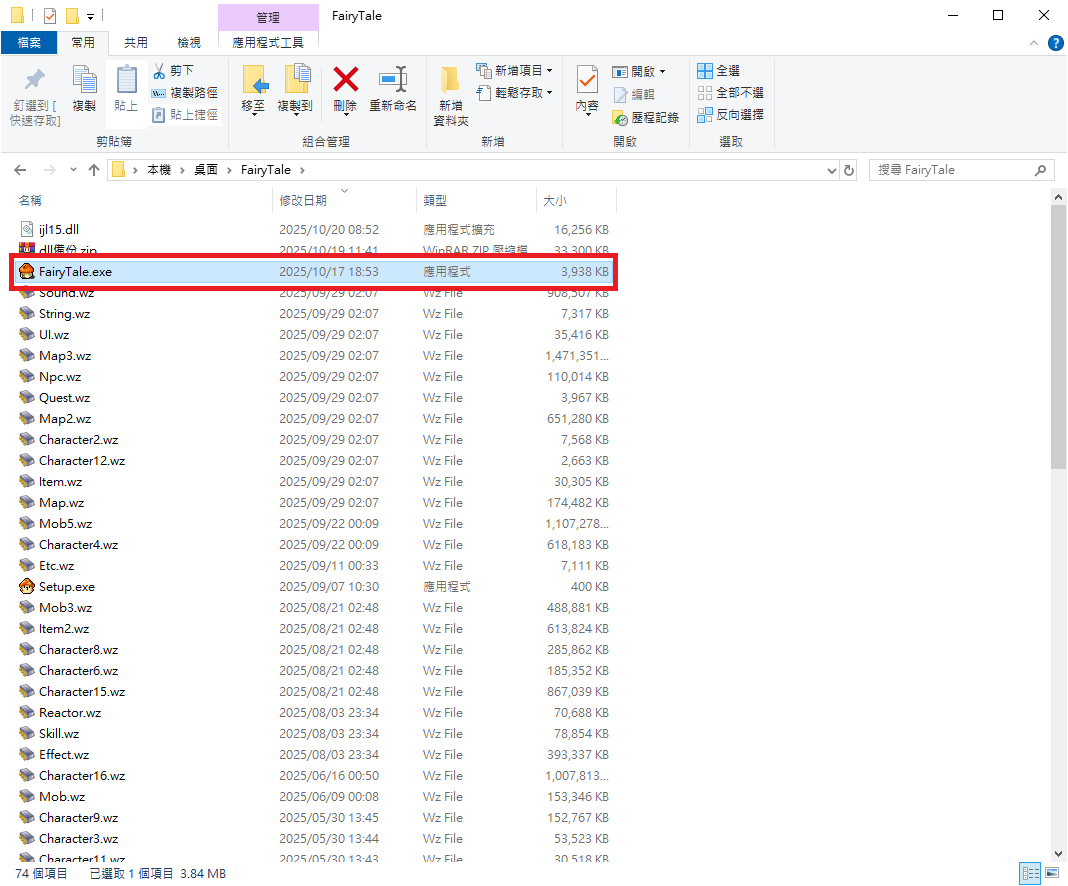5.更新完成後,開啟主程式資料夾後雙擊【FairyTale.exe】即可開始遊戲