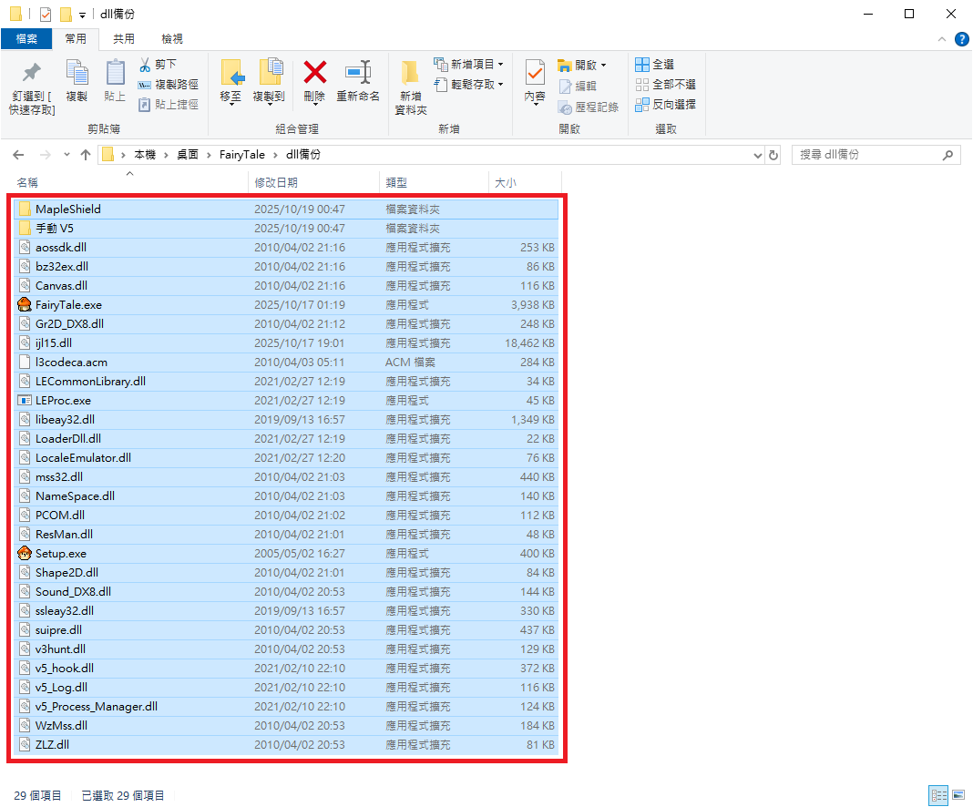7.打開【dll備份】資料夾,將資料夾內【所有檔案全部選取】,依個人習慣複製或剪下
