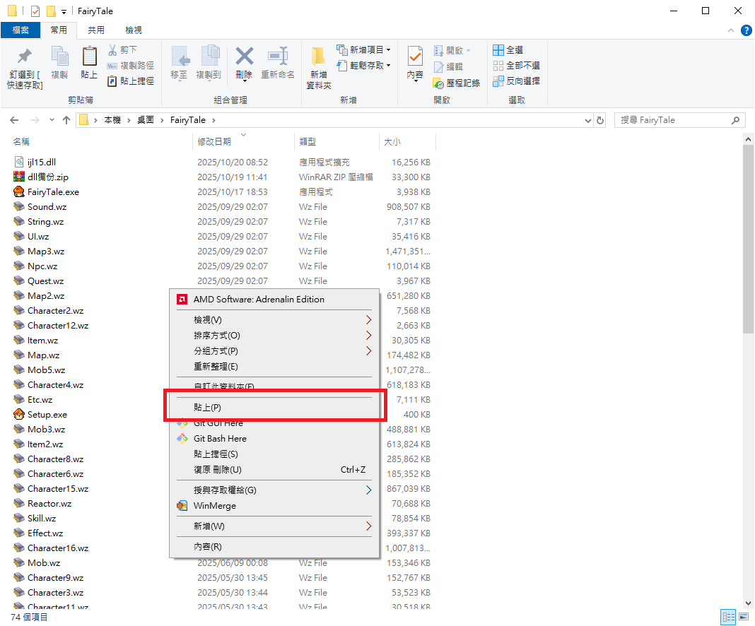8.回到【遊戲主程式】資料夾,將剛才複製或剪下的檔案貼上至此