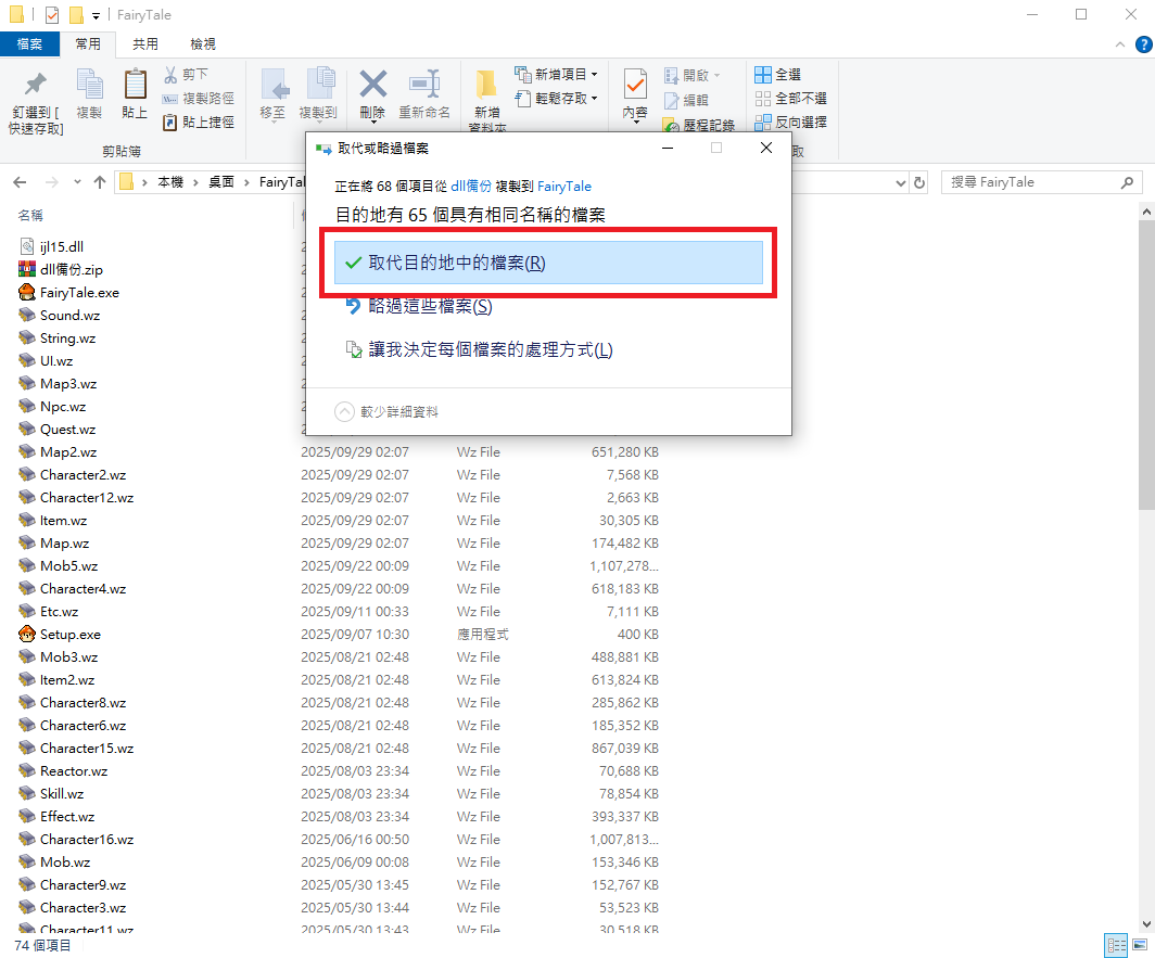 4.選擇【取代目的地中的檔案】,即會把新版的檔案覆蓋上去,更新完成