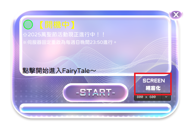2.視窗化與全螢幕切換按鈕,可使用滑鼠點擊此區域來回做切換,目前顯示的是當前使用的設置