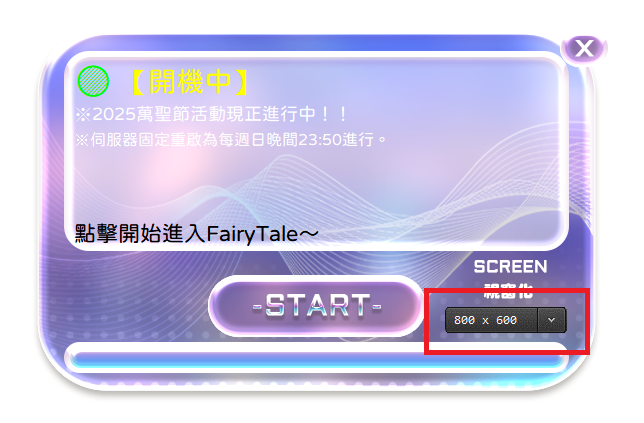 3.遊戲視窗解析度設置,目前提供8種解析度可供選擇,直接在此選擇你想使用的解析度即可