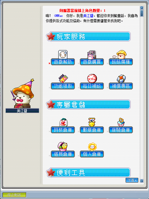 在楓童話裡面,有許多便捷的功能與服務都是由我們的《童話顧問─美江醬》提供服務的,所以加入楓童話首先必須認識他以及他有什麼服務。