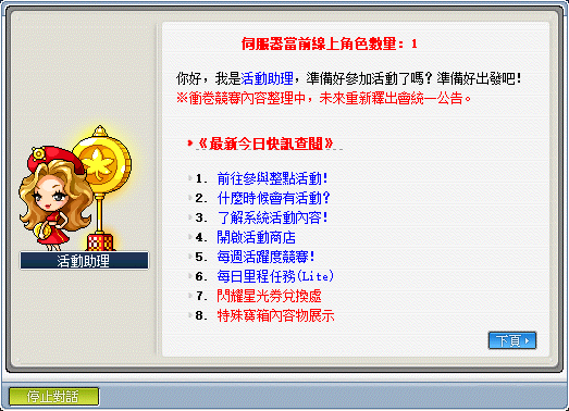 《活動助理主菜單》─內有許多活動說明與活動獎勵選項,下圖即為主菜單頁面。