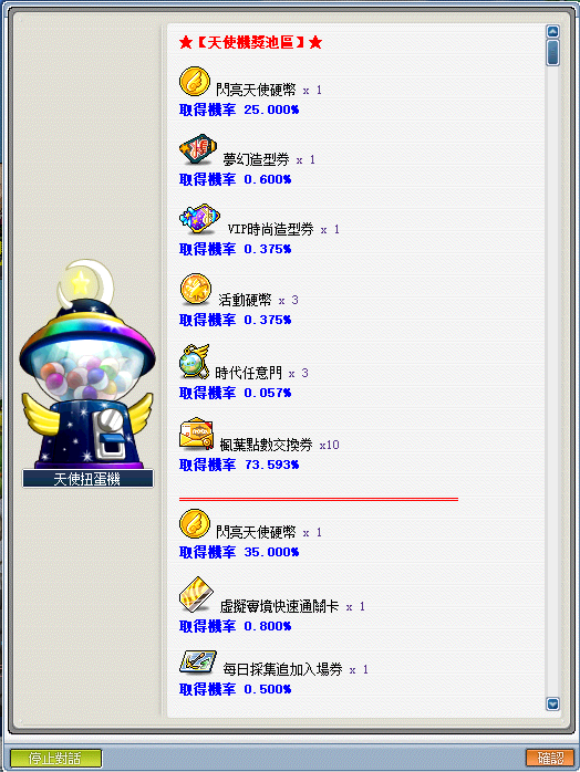 楓童話裡最無可取代的特殊系統,就非 天使扭蛋機 莫屬了!
