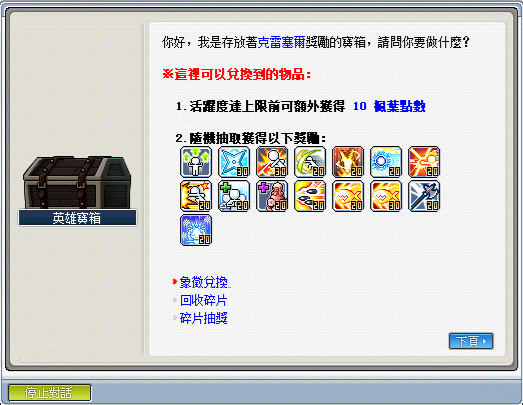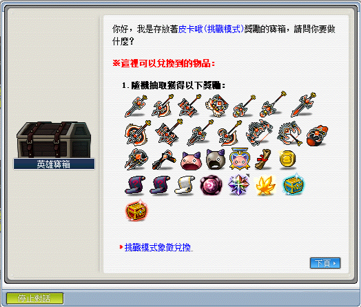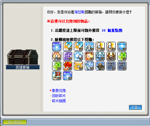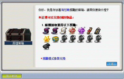 1.每次通關可獲得海怒斯討伐象徵,可使用象徵兌換功能抽取獎勵