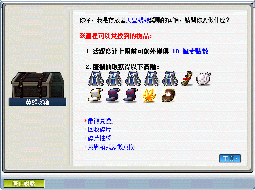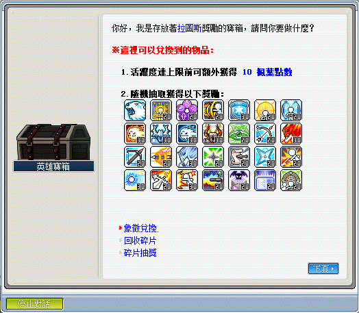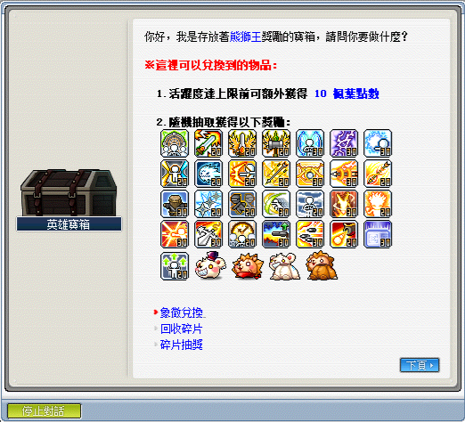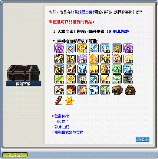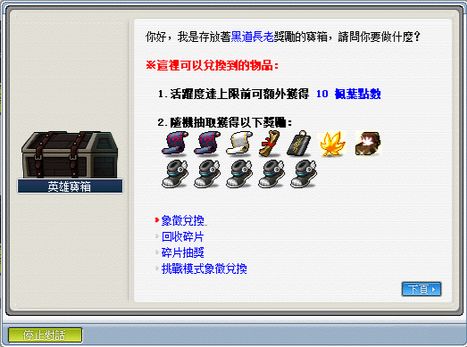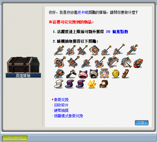 ※入口處旁有個 NPC 英雄寶箱,裡面有各式兌換獎勵的機制