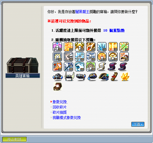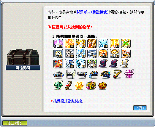 1.每次通關可獲得闇黑龍王討伐象徵,可使用象徵兌換功能抽取獎勵