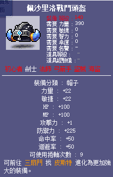 ※職業頭盔─各職業專屬的頭盔,後期可透過進化系統繼續升級成更強大的裝備