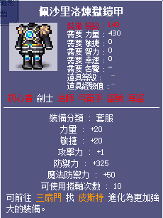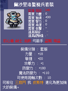 ※通用套裝─全職業通用的套裝,後期可透過進化系統繼續升級成更強大的裝備