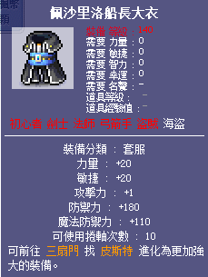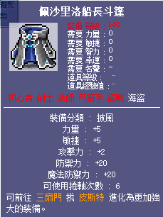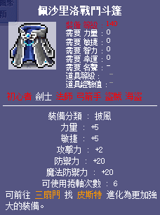 ※職業披風─各職業專屬的披風,後期可透過進化系統繼續升級成更強大的裝備