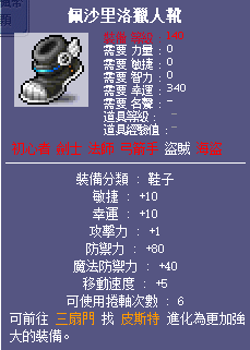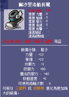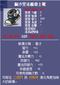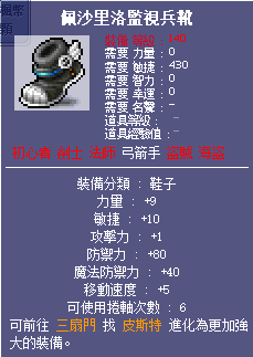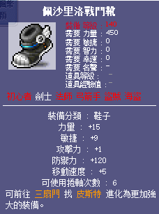※職業鞋子─各職業專屬的鞋子,後期可透過進化系統繼續升級成更強大的裝備