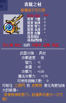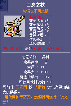 ※屬性法杖─法師職業專屬的屬性法杖,後期可透過進化系統繼續升級成更強大的屬性法杖