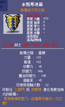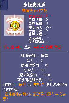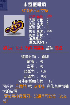 ※職業盾牌─劍士、法師、盜賊職業專屬的盾牌,後期可透過進化系統繼續升級成更強大的盾牌