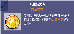 在楓童話中,活動硬幣是非常常見的遊戲資源之一,可於「活動商店」處兌換各式稀有寶物、加倍券…等實用道具。