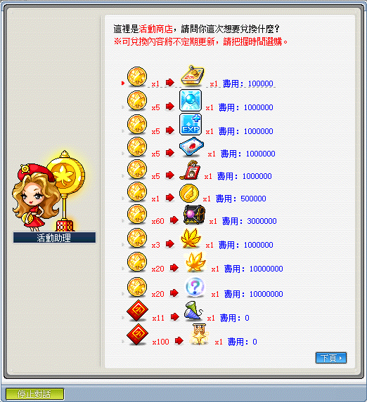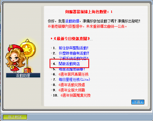 接下來就是介紹活動硬幣的用途,於遊戲視窗右下角找到活動助理,其中的「開啟活動商店」選項,即可查看可以兌換的項目