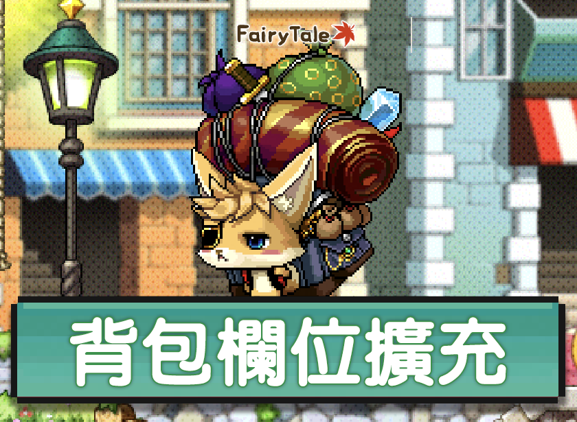 2011年版的v113版楓之谷原本設置就是背包格子需要花費擴充的,在楓童話沿用了此設置,但我們新增了擴充背包的途徑,也就是找《童話旅行家─狐狸隊長》,也藉此給新手取得資源以及配合進行任務快速升等到達120等(四轉)的方向。