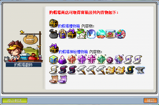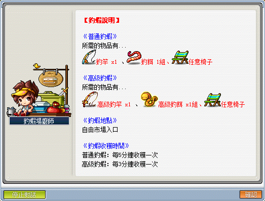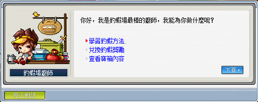 ※釣蝦場廚師:可以查看釣蝦方法與兌換相關獎勵的助手