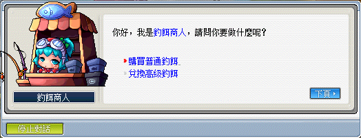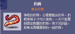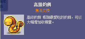 ※釣餌商人:釣餌的兌換助手,普通釣餌可以從這裡購買,高級釣餌則需拿罐頭在此兌換