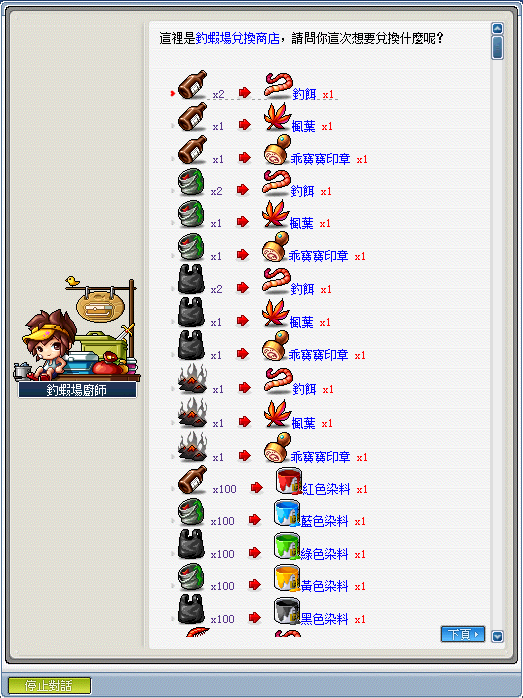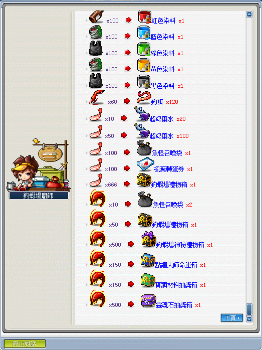 《兌換獎勵》─前往 NPC 釣蝦場廚師 處兌換各式各樣的獎勵