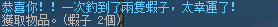 ※成功情況2:成功釣到了蝦子,並且機率獲取額外活躍度