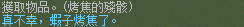 ※烤蝦說明:身上只要持有蝦子,就可以前來烤蝦,且烤蝦時會出現以下幾種可能的結果