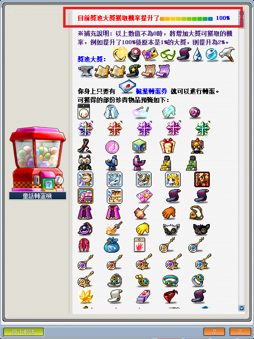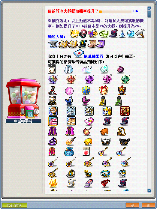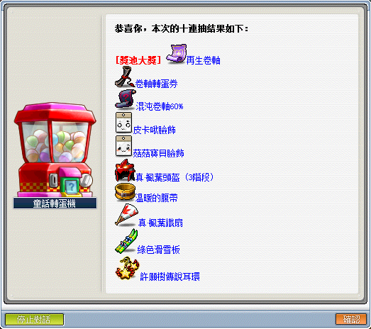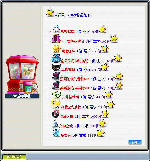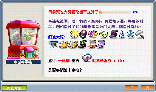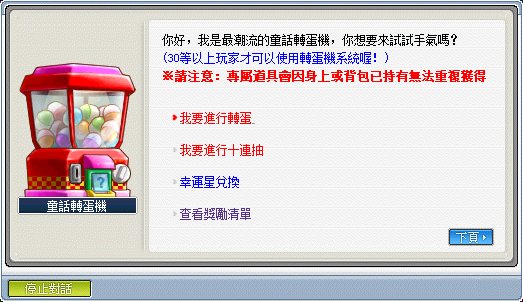 等級限制:30等級↑;需求道具:楓葉轉蛋券