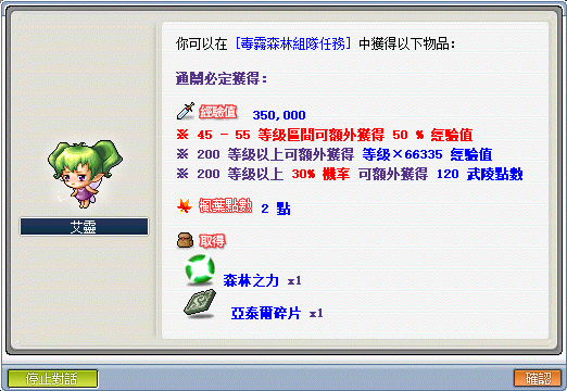 - 在 45 等後也可以組隊進行「毒霧森林組隊任務」,邊刷實用的亞泰爾耳環,詳情可查看組隊任務攻略。
