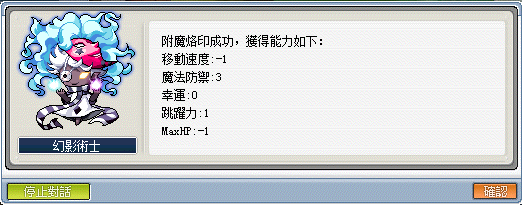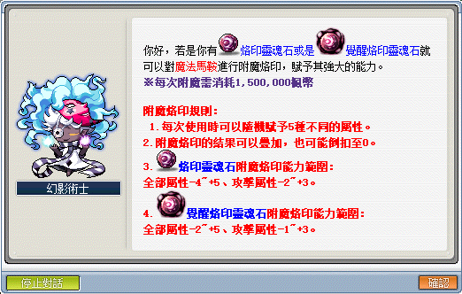 4.確定選擇後,消耗材料並且展示本次附魔烙印結果,如若扣除的素質低於0則最低只會降至0