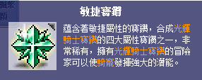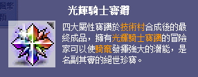 1.全伺服器狩獵怪物低機率獲得四大屬性寶鑽,集齊後可於萬能製作砧製作出光輝騎士寶鑽