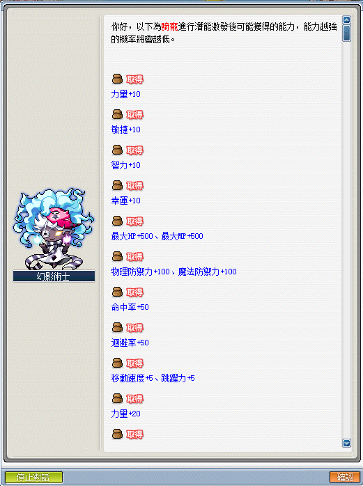 專業技術村的幻影術士也掌握著潛能激發的技術,如果你不知道專業技術村怎麼去,請先前往 認識常用地圖 了解怎麼前往喔!