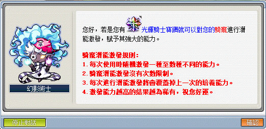 6.使用過潛能激發座騎也可以在 童話顧問 的 潛能傳授功能,將能力與其他座騎互換,換至你喜歡的外觀上