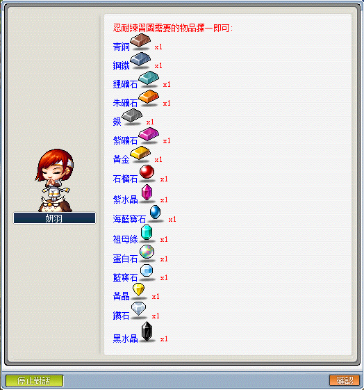 ※傳送至忍耐練習地圖:入場時需消耗任意的礦石成品一個即可