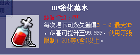 ※只有等級超過201的玩家才可以使用,其餘只有特殊活動時期會出現全等級通用版本的藥水